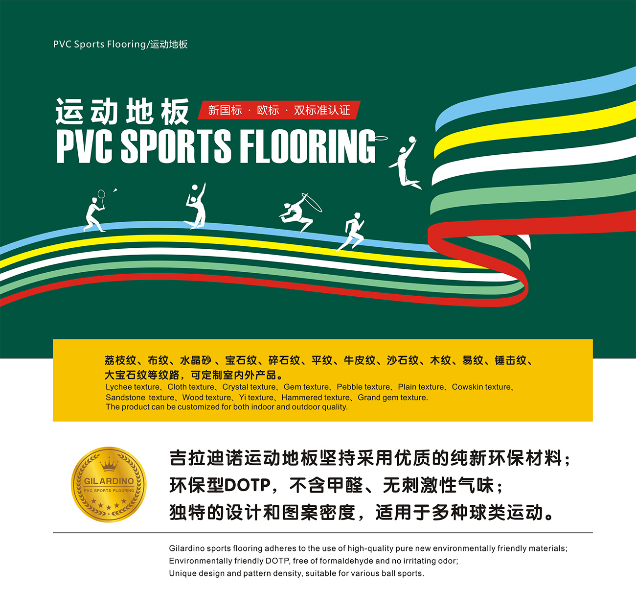 運(yùn)動地板紋理:木紋/寶石紋/碎石紋/沙石紋/水晶砂/布紋/平板/荔枝紋/牛皮紋/定制紋理