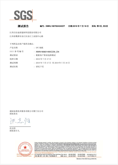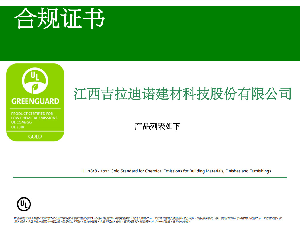 Floorscore 認證證書