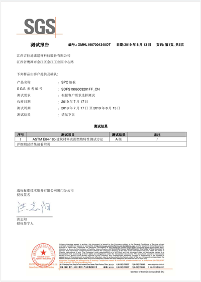 國家建筑材料測試中心防火等級檢測報告